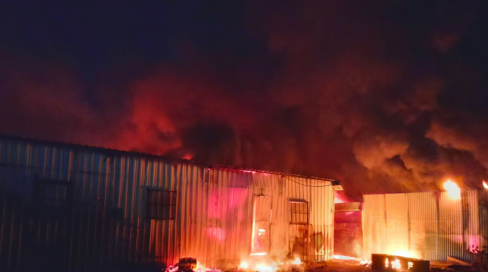 ६,००० चौरस फूट फॅक्टरी जळून खाक – अत्याधुनिक मशिन्स आणि साहित्याचे मोठे नुकसान!