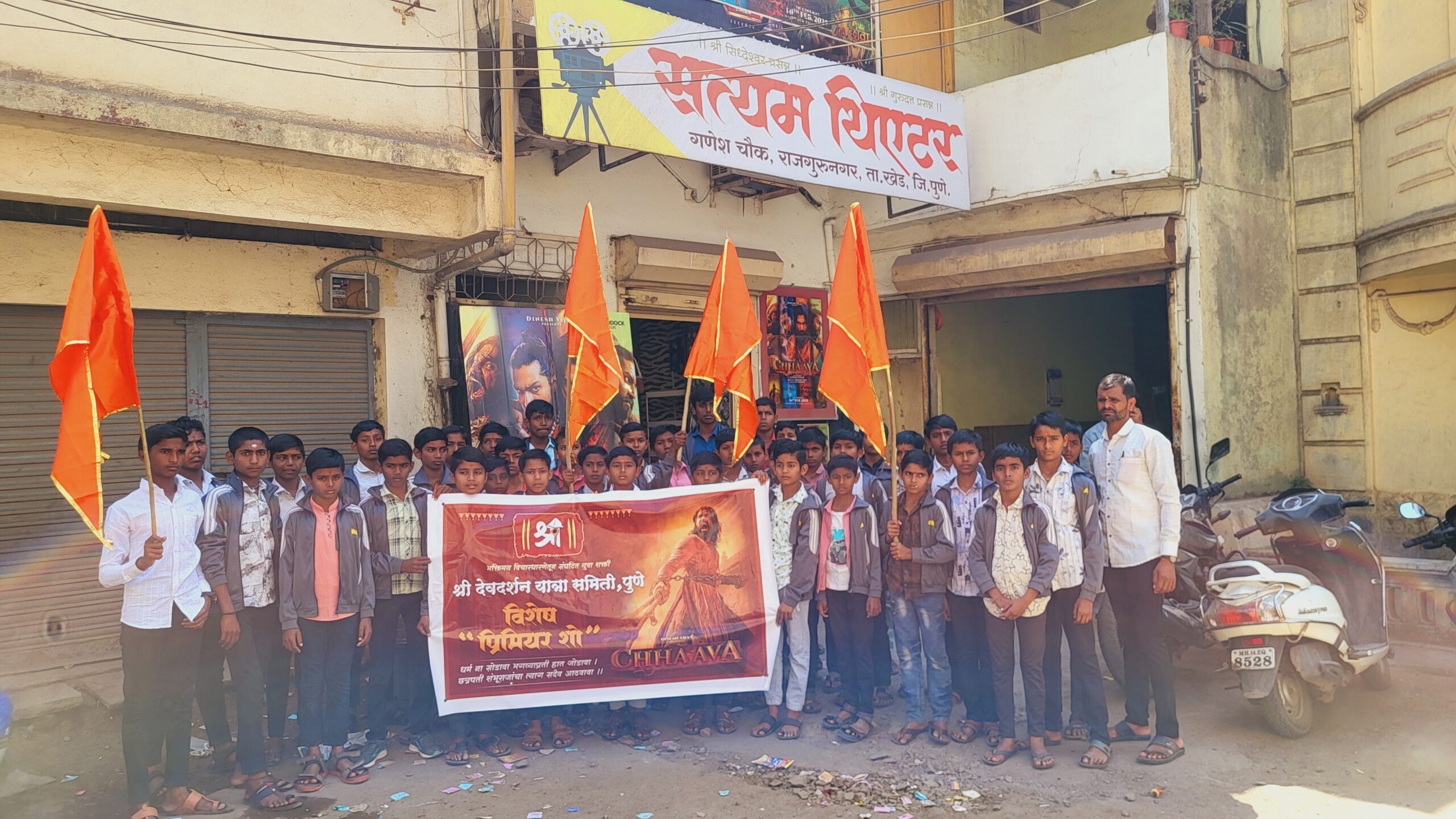 भक्तिमय विचारधारणेतून संघटित युवा शक्ती, “श्री देवदर्शन यात्रा समिती, पुणे” च्या वतीने खेड येथील वाडा रोड स्थित एका निराधार निवासी वसतीगृहातील एकूण ५० गरजवंत विद्यार्थ्यांना राजगुरुनगर येथील सत्यम थिएटर्स या चित्रपट गृहामध्ये “हिंदवी स्वराज्य संरक्षक धर्मवीर छत्रपती संभाजी महाराज” यांच्या जीवनपटावर आधारित नुकताच प्रसिद्ध झालेला “छावा” या चित्रपटाचा विशेष प्रिमीअर शो आयोजित केला गेला.