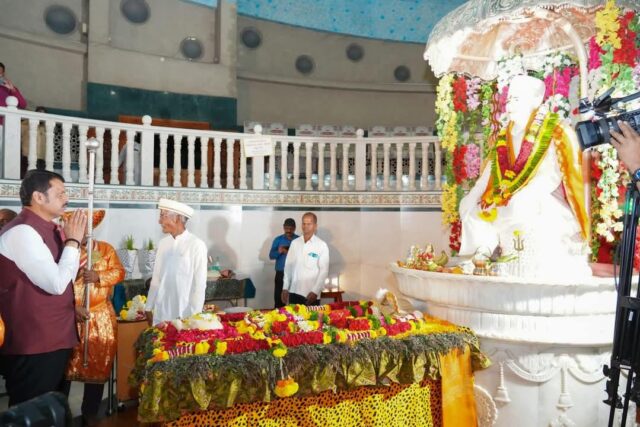 कोल्हापूर :- महाराष्ट्राचे मुख्यमंत्री देवेंद्र फडणवीस यांनी आज पैजारवाडी, कोल्हापूर येथील जगद्गुरु दत्त चिले महाराज मंदिरात भक्तिभावाने दर्शन घेतले व आशीर्वाद प्राप्त केले. या पवित्र दर्शनानंतर मुख्यमंत्री फडणवीस यांनी कोल्हापूरमधील विविध कार्यक्रर्यांमध्ये सहभाग घेतला.