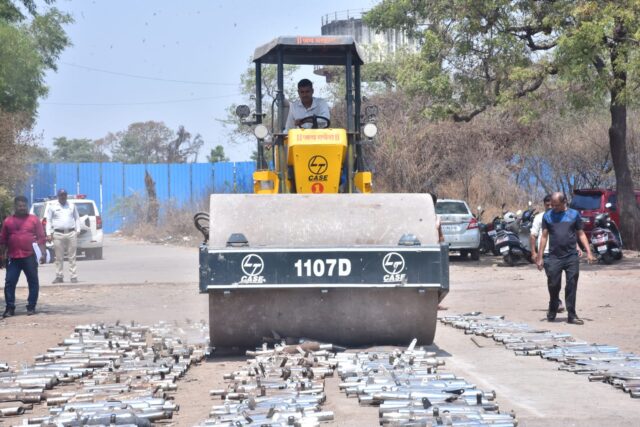 पुणे: पुणे शहरात वाढत्या बुलेट मॉडिफाय सायलेन्सरच्या कर्कश आवाजावर अखेर कठोर कारवाई करण्यात आली आहे. पुणे शहर वाहतूक शाखेकडून ‘बुलेट सायलेन्सर विशेष मोहीम’ राबवून तब्बल 1768 मॉडिफाय सायलेन्सर जप्त करण्यात आले असून त्यावर रोड रोलर फिरवून नष्ट करण्यात आले.