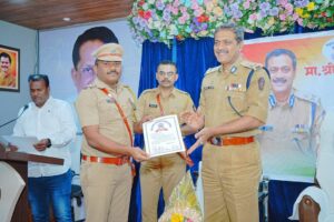 सोलापूर : मा.श्री. सुनिल फुलारी, विशेष पोलीस महानिरीक्षक, कोल्हापूर परिक्षेत्र, कोल्हापूर हे सोलापूर ग्रामीण पोलीस दलाच्या वार्षीक तपासणी दौ-यावर असून त्यांनी दिनांक २०.०३.२०२५ रोजी उपविभागीय पोलीस अधिकारी, करमाळा विभाग येथे तपासणी घेतली आहे. उपविभागीय पोलीस अधिकारी कार्यालय येथील वापीक तपासणी दरम्यान उपविभागातील सर्व पोलीस ठाण्यांच्या वार्षीक कामगिरीचा आढावा घेवून अभिलेखांची पडताळणी केली आहे. तसेच उपविभागातील पोलीस अधिकारी यांच्या मुलाखती घेण्यात आले आहेत. मा.श्री. सुनिल फुलारी, विशेष पोलीस महानिरीक्षक, कोल्हापूर परिक्षेत्र, कोल्हापूर यांना नुकतेच महामहीम राष्ट्रपती पोलीस सेवा पदक हे दुसऱ्यावेळी मिळाल्याबद्दल करमाळा येथील नागरिकांतर्फे त्यांचा जाहीर सत्कार करण्यात आला आहे. तसेच वर्षभरात चांगले काम करणारे पोलीसांना प्रशिस्तपत्र देवून सन्मानीत करण्यात आले आहे.