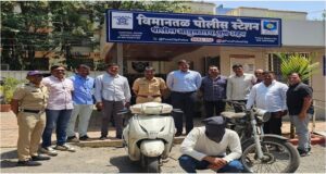 दिनांक ५ मे २०२५ रोजी विमानतळ पोलिसांच्या तपास पथकातील कर्मचाऱ्यांना गोपनीय बातमीदारामार्फत माहिती मिळाली की, एक इसम लोहगाव येथून दुचाकी चोरून सध्या आर.के. चौकाजवळील मोकळ्या मैदानात थांबलेला आहे. ही माहिती मिळताच तपास पथक प्रमुख सहायक पोलीस निरीक्षक विजय चंदन यांच्या मार्गदर्शनाखाली तात्काळ सापळा रचण्यात आला.