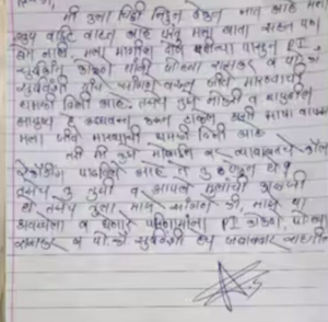 विष्णू केमदारणे यांनी लिहून ठेवलेल्या चिठ्ठीत इंदापूर पोलीस ठाण्याचे पोलीस निरीक्षक सूर्यकांत कोकणे, पोलीस हवालदार रासकर आणि पोलीस कॉन्स्टेबल सूर्यवंशी यांच्यावर मानसिक छळाचे थेट आरोप केले आहेत. “मी गेल्या दोन महिन्यांपासून मानसिक यातना सहन करत आहे. मला जीवे मारण्याच्या धमक्या देण्यात आल्या. माझं आयुष्य आणि नोकरी उद्ध्वस्त करीन, असे वारंवार धमकावण्यात आलं,” असे त्यांनी चिठ्ठीत स्पष्ट नमूद केलं आहे.