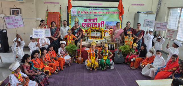 या वेळी संत ज्ञानेश्वर, संत तुकाराम, संत जनाबाई, संत नामदेव यांचे वेश परिधान करून विद्यार्थ्यांनी त्यांच्या शिकवणी आणि विचारांचे सादरीकरण केले. विशेष म्हणजे, विठ्ठल-रुक्मिणी रूपातील विद्यार्थ्यांची झलक सर्वांचे लक्ष वेधून घेत होती. परिसरात ‘ज्ञानोबा माऊली महाराज की जय’, ‘तुकाराम महाराज की जय’ अशा घोषणांनी वातावरण भक्तिरसात न्हालं.