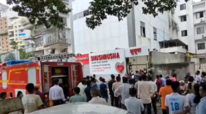 नवी मुंबई: नेरुल येथील शुश्रुषा रुग्णालयात सोमवारी मोठ्या प्रमाणात आग लागल्याची घटना समोर आली आहे. प्राथमिक माहितीनुसार, आग एक्स-रे रूममध्ये सुरू झाली. घटनास्थळी रुग्णालयीन कर्मचाऱ्यांनी तातडीने सुरक्षितता उपाययोजना केल्यामुळे सर्व रुग्णांना सुरक्षितपणे बाहेर काढण्यात आले.