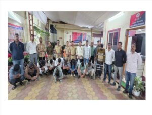 गोपनीय माहितीच्या आधारे पोलिसांनी पत्र्याच्या शेडखाली सुरू असलेल्या पैशावरच्या जुगारावर अचानक छापा टाकला आणि ११ जुगारी इसमांना रंगेहाथ पकडण्यात आले. या कारवाईत रोख रक्कम, जुगार साहित्य, मोबाईल फोन आणि ५ मोटारसायकली असा एकूण ५,४३,०१०/- रुपयांचा मुद्देमाल जप्त करण्यात आला.