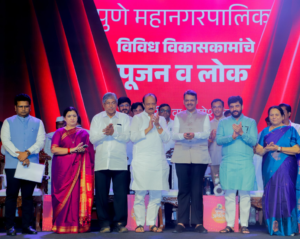 पुणे शहराच्या सर्वांगीण विकासाला गती देणारा भव्य सोहळा आज पार पडला. पुणे महानगरपालिका आणि महाराष्ट्र मेट्रो रेल कॉर्पोरेशनच्या सुमारे ३,००० कोटी रुपयांच्या तब्बल ५३ विविध विकासकामांचे भूमिपूजन व लोकार्पण मुख्यमंत्री मा. श्री. देवेंद्रजी फडणवीस यांच्या प्रमुख उपस्थितीत करण्यात आले. या महत्त्वपूर्ण कार्यक्रमाला उपमुख्यमंत्री मा. श्री. अजितदादा पवार यांचीही उपस्थिती लाभली.