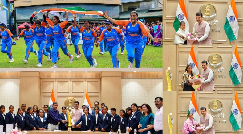 भारताच्या दृष्टिबाधित महिला टी-20 क्रिकेट संघाने जागतिक पातळीवर अभूतपूर्व आणि ऐतिहासिक कामगिरी करत विश्वविजेतेपद पटकावले आहे. या उल्लेखनीय यशाबद्दल मुख्यमंत्री देवेंद्र फडणवीस यांच्या हस्ते संघातील खेळाडूंचा सन्मानपूर्वक गौरव करण्यात आला. मुख्यमंत्री निवासस्थान ‘वर्षा’ येथे झालेल्या या विशेष समारंभात देशाचा तिरंगा उंचावणाऱ्या खेळाडूंवर कौतुकाचा वर्षाव झाला.
