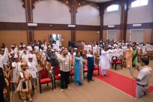 संतपीठ शाळेतील विद्यार्थ्यांनी “हक्क आपल्या मतदानाचा” हे प्रेरणादायी गीत सादर केले. हे गीत संतपीठ शाळेतील शिक्षकांनी रचले असून, विद्यार्थ्यांना गीत सादर करताना किबोर्ड वादक श्रुती तनपुरे, पखवाज वादक अविनाश भोगील आणि तबला वादक विवेक भालेराव यांनी साथ दिली. या गीताच्या सादरीकरणानंतर विद्यार्थ्यांना महापालिकेच्या वतीने मतदान जनजागृतीसाठी राबवण्यात येत असलेल्या ‘प्रिय आई–बाबा, पत्रास कारण की…’ या उपक्रमांतर्गत विद्यार्थ्यांना पत्रांचे वाटप करण्यात आले.
