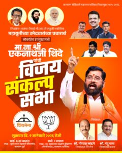 या जाहीर सभांमध्ये स्थानिक नेते, पदाधिकारी, कार्यकर्ते तसेच महायुतीचे उमेदवार मोठ्या संख्येने उपस्थित राहणार असून, ही सभा निवडणूक प्रचारातील महत्त्वाचा टप्पा मानली जात आहे. त्यामुळे नागरिकांनीही या सभांना उपस्थित राहून आपला सहभाग नोंदवावा, असे आवाहन आयोजकांच्या वतीने करण्यात आले आहे.