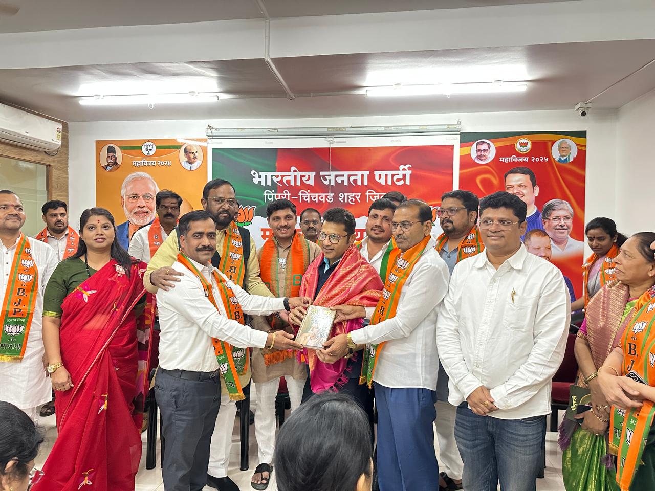 शहराध्यक्ष शत्रुघ्न (बापू) काटे यांच्या अध्यक्षतेखाली पार पडलेल्या या कार्यक्रमाला माजी खासदार अमर साबळे, प्राधिकरणाचे माजी अध्यक्ष सदाशिव खाडे, संघटन सरचिटणीस मोरेश्वर शेडगे, महिला मोर्चा अध्यक्ष सुजाता पालांडे, सरचिटणीस मधुकर बच्चे, वैशाली खाडेय, विकास डोळस, माजी महापौर राहुल जाधव, युवा मोर्चा अध्यक्ष दिनेश यादव, मंडल अध्यक्ष गणेश ढोरे, कैलास सानप, कविता हिंगे यांच्यासह नवनिर्वाचित नगरसेवक, नगरसेविका तसेच कोअर कमिटीच्या सदस्य, भाजप पदाधिकारी कार्यकर्ते यांनी उपस्थित राहून नवनिर्वाचित पदाधिकाऱ्यांना शुभेच्छा दिल्या.