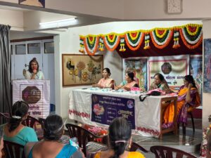 या कार्यक्रमात “ताईची वुशु” या चायनीज मार्शल आर्ट प्रकाराबद्दल राष्ट्रीय आणि आंतरराष्ट्रीय सुवर्णपदक विजेत्या डॉ. जॅस्मिन पोकरणा यांनी मार्गदर्शन केले. त्यांनी वुशु या क्रीडाप्रकारामागील संकल्पना, त्याचे आरोग्यदायी फायदे आणि महिलांसाठी त्याचे महत्त्व याविषयी सविस्तर माहिती दिली. महिलांनी स्वसंरक्षणासाठी अशा क्रीडाप्रकारांचे प्रशिक्षण घेणे गरजेचे असल्याचे त्यांनी सांगितले. या कार्यक्रमाच्या अध्यक्षा छायाताई कांकरिया यांनी चिंचवडचे आराध्य दैवत Morya Gosavi यांच्यावर आधारित केलेली रचना सादर केली. त्यांच्या या सादरीकरणाला उपस्थितांनी भरभरून दाद दिली. तसेच अतिथी म्हणून उपस्थित असलेल्या डॉ. पौर्णिमा कोल्हे यांनी कवितेच्या आशयावर केलेले भाष्यही रसिकांच्या मनाला भिडले.
