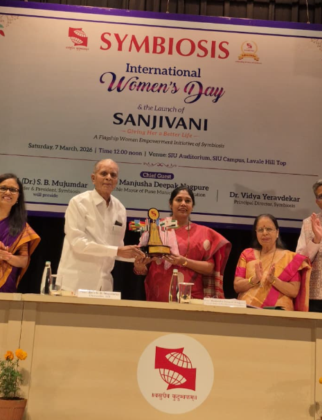 पुणे, दि. ७ मार्च २०२६ : आंतरराष्ट्रीय महिला दिनाच्या निमित्ताने पुण्यातील Symbiosis International University अंतर्गत कार्यरत Symbiosis College येथे विशेष कार्यक्रमाचे आयोजन करण्यात आले. स्त्री शक्तीचा सन्मान, महिलांचे सशक्तीकरण आणि समाजातील त्यांच्या योगदानाचा गौरव करण्याच्या उद्देशाने हा कार्यक्रम मोठ्या उत्साहात पार पडला.