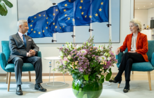 युरोपियन संघ आणि भारत यांच्यातील संबंध अधिक मजबूत करण्याच्या दृष्टीने आज एक महत्त्वपूर्ण बैठक पार पडली. युरोपियन आयोगाच्या अध्यक्ष Ursula von der Leyen यांची सदिच्छा भेट घेतल्याचा आनंद व्यक्त करण्यात आला. या बैठकीत भारत-युरोप संबंध, जागतिक घडामोडी आणि भविष्यातील सहकार्याबाबत सखोल चर्चा झाली.