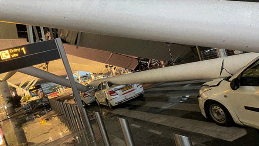 “आज सकाळपासून झालेल्या जोरदार पावसामुळे, दिल्ली विमानतळाच्या टी1 टर्मिनलच्या जुना प्रस्थान विभागाच्या छताचा काही भाग सकाळी ५ वाजता कोसळला. काही जखमी झाल्याची माहिती असून, आपत्कालीन कर्मचारी सर्व आवश्यक मदत आणि वैद्यकीय सेवा पुरविण्यासाठी काम करत आहेत,” असे दिल्ली विमानतळाने आपल्या निवेदनात म्हटले आहे.
