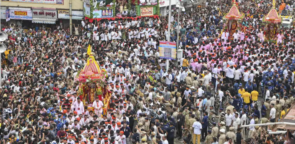 मंगळवारी संध्याकाळी ओडिशाच्या पुरीतील जगन्नाथ मंदिरातील भगवान बलभद्राची मूर्ती गोंडिचा मंदिरात नेण्याच्या दरम्यान तात्पुरत्या जिन्यावरून घसरल्यामुळे डझनभर सेवक जखमी झाले.