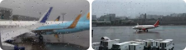 विमान उडीमारण्यांवर प्रभाव झाला, हवामान विभागानुसार शहरातील भारी पावसामुळे विमान उडीमारण्यांवर प्रभाव झाला.