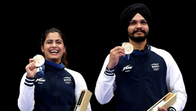 मनु भाकर आणि सरबजोत सिंग यांनी मिश्र संघ 10 मीटर एअर पिस्टल फायनलमध्ये कांस्य पदक जिंकले.