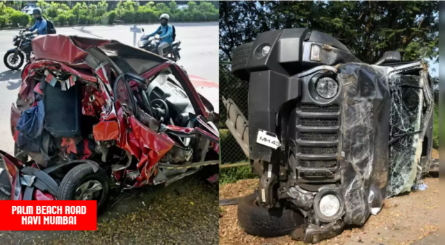 नवी मुंबई, पाम बीच रोडवरील भीषण अपघात, कुटुंबातील एकाचा मृत्यू, चार वर्षांच्या मुलीची अवस्था गंभीर.